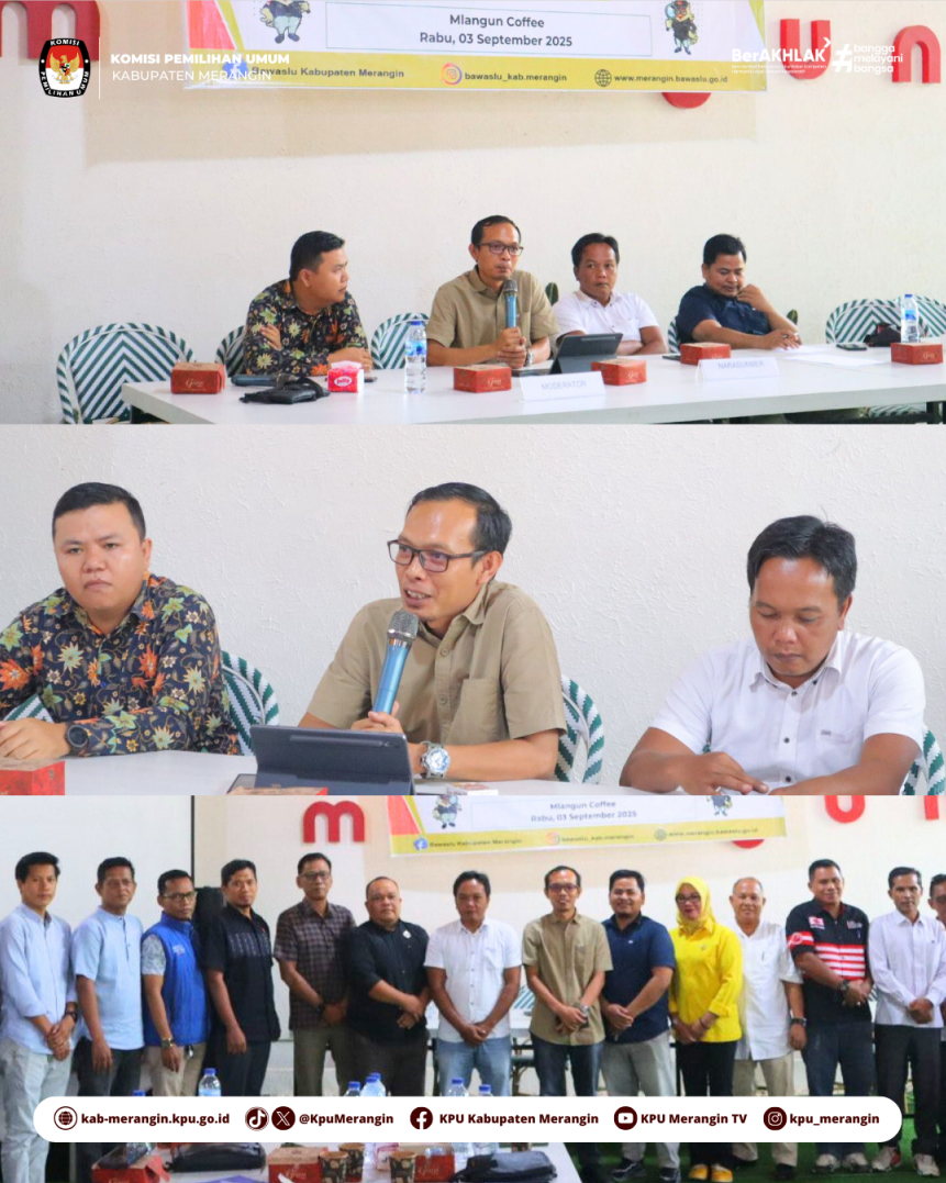 Ketua KPU Kabupaten Merangin Alber Trisman memaparkan mengenai Hasil Pemilihan Umum dan Pemilihan Tahun 2024. Giat dipimpin langsung oleh Ketua Bawaslu Merangin Himun Zuhri, serta di hadiri Anggota Bawaslu Provinsi Jambi dan perwakilan Partai Politik Kabupaten Merangin.