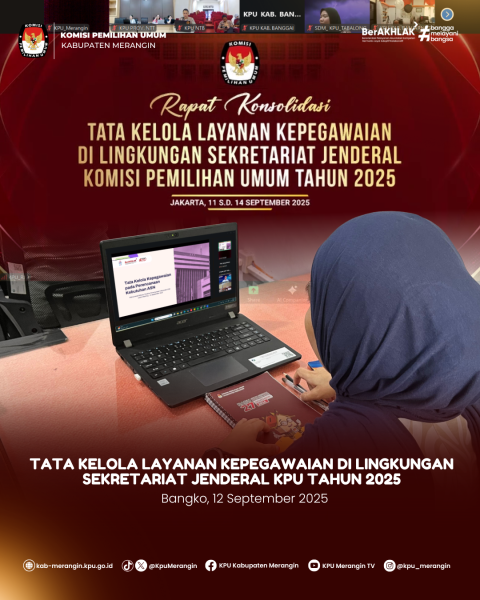 Bangko, KPU Kabupaten Merangin mengikuti kegiatan Rapat Koordinasi Tata Kelola Layanan Kepegawaian di Lingkungan Sekretariat Jenderal KPU Tahun 2025, yang dilaksanakan oleh KPU RI secara Virtual pada hari Jum’at, (12/9/2025).