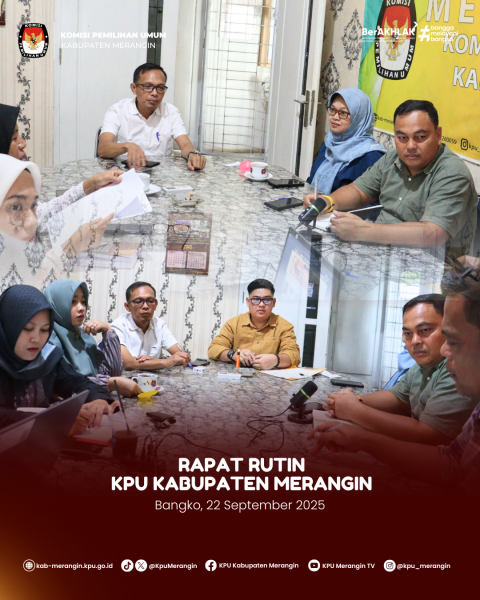 Dipimpin oleh Ketua KPU Kabupaten Merangin, Alber Trisman, Rapat Pleno Rutin dihadiri oleh seluruh Anggota KPU Kabupaten Merangin, dan Sekretaris serta Kasubbag KPU Kabupaten Merangin.
