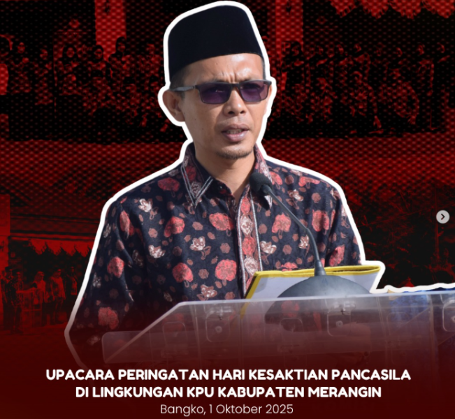 Bangko, Komisi Pemilihan Umum Kabupaten Merangin Melaksanakan Upacara Peringatan Hari Kesaktian Pancasila, di Halaman Kantor KPU Kabupaten Merangin. Rabu, 01 Oktober 2025.