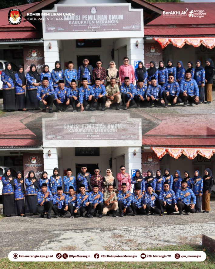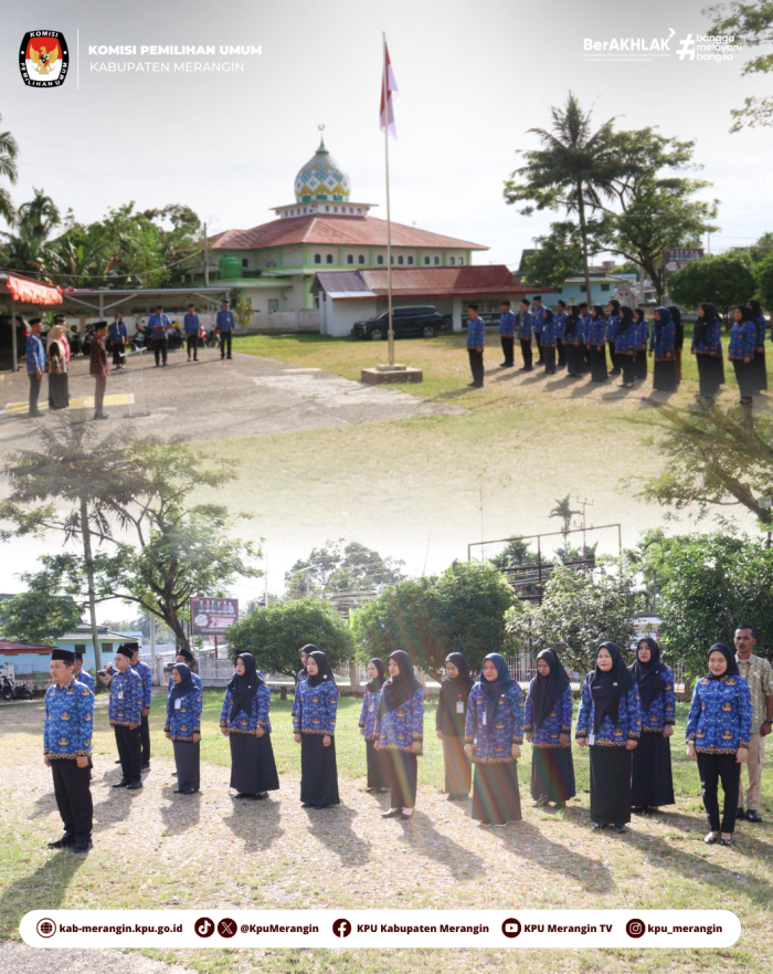 Ketua KPU Kabupaten Merangin Alber Trisman bertindak sebagai Pembina upacara dan di ikuti oleh Anggota Komisi Pemilihan Umum Kabupaten Merangin serta Sekretaris Komisi Pemilihan Umum Kabupaten Merangin, Kasubbag dan seluruh staf Sekretariat KPU Kabupaten Merangin.