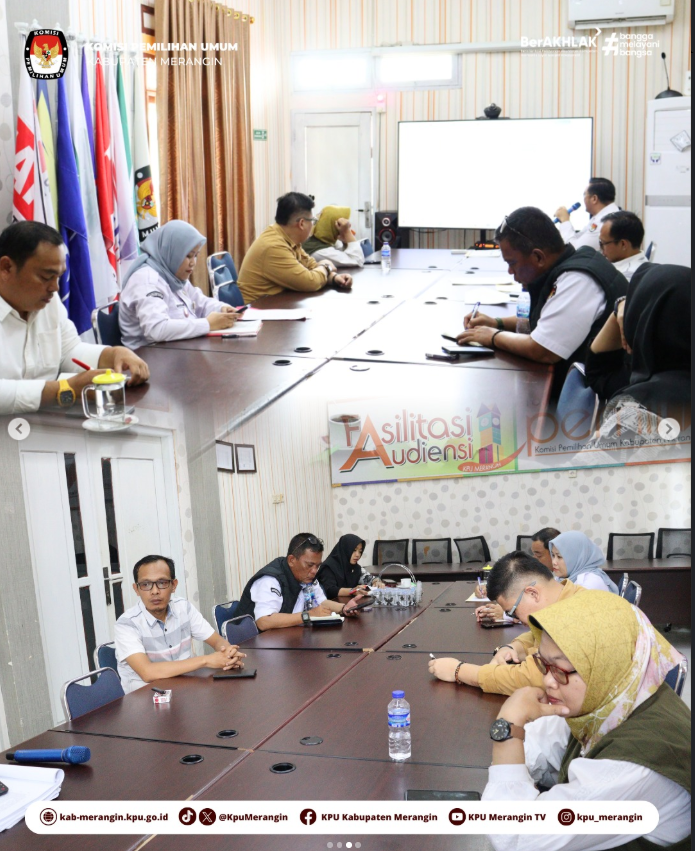 Bangko, KPU Kabupaten Merangin melaksanakan Rapat Pleno Rutin Senin, 20 Oktober 2025, dilaksanakan di Aula Kantor KPU Kabupaten Meraangin.