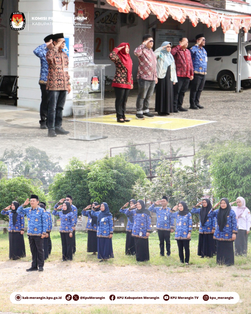 Halo #TemanPemilih, Bertempat di halaman Kantor, KPU Kabupaten Merangin melaksanakan Upacara Hari Pahlawan Nasional. Ketua KPU Kabupaten Merangin, Alber Trisman menjadi pemimpin upacara dengan peserta upacara seluruh satuan kerja KPU Kabupaten Merangin.