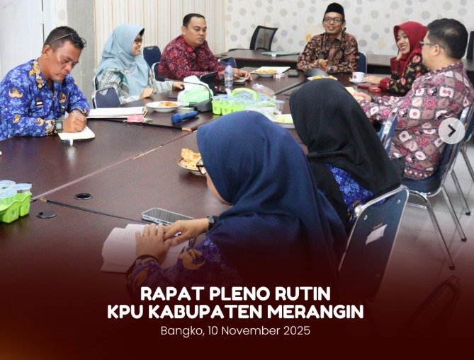 Halo #TemanPemilih, KPU Kabupaten Merangin melaksanakan Rapat Pleno Rutin Senin, 10 November 2025, dilaksanakan di Aula Kantor KPU Kabupaten Meraangin.