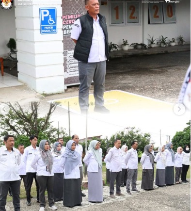 Bangko, KPU Kabupaten Merangin melaksanakan Apel pagi di halaman kantor KPU Kabupaten Merangin. (Senin, 8 Desember 2025).