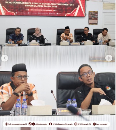Bangko, KPU Kabupaten Merangin mengikuti Rapat Koordinasi Persiapan Rekapitulasi Pemutakhiran Data Pemilih Berkelanjutan (PDPB) Semester II Provinsi Jambi Tahun 2025, yang diselenggarakan oleh KPU Provinsi Jambi. (Rabu, 10 Desember 2025).