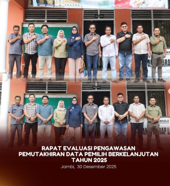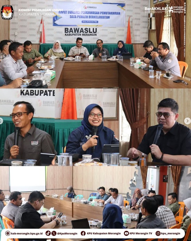 Bangko, KPU Kabupaten Merangin mengikuti Kegiatan Rapat Evaluasi Pengawasan Pemutakhiran Data Pemilih Berkelanjutan (PDPB) yang diselenggarakan oleh Badan Pengawas Pemilu (Bawaslu) Kabupaten Merangin, pada Selasa (30/12/2025).