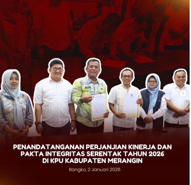Bangko, KPU Kabupaten Merangin melaksanakan Penandatanganan Perjanjian Kinerja dan Penandatanganan Pakta Integritas Tahun 2026, pada hari Jum'at (02/01/2026) di Aula Kantor KPU Kabupaten Merangin.