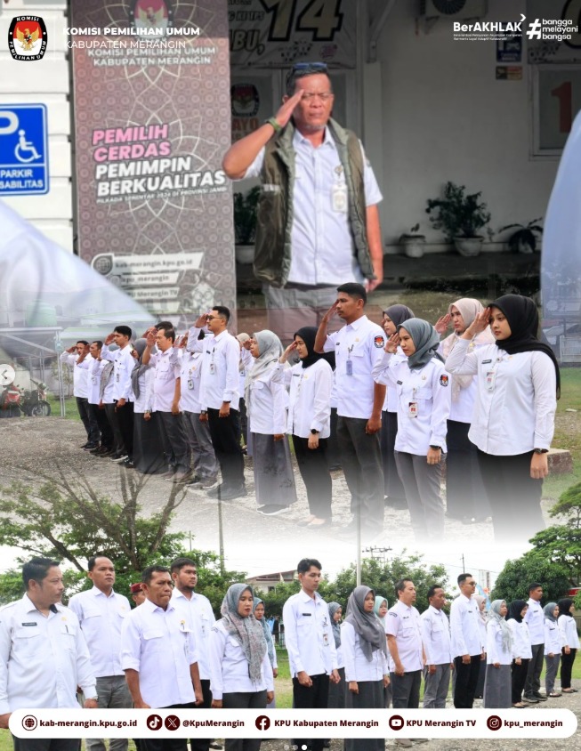 Bertindak selaku Pembina Apel yaitu Sekretaris KPU Kabupaten Merangin M. Arif Suryandi Lingga dan diikut oleh Kasubbag beserta Staf di Lingkungan KPU Kabupaten Merangin.