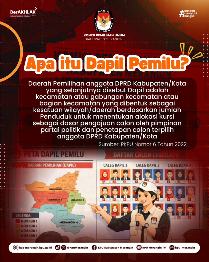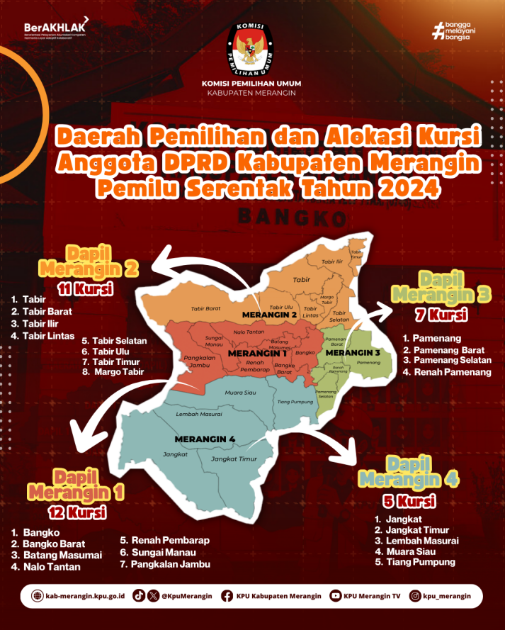 Yuk kenali Daerah Pemilihan (Dapil) kamu untuk DPRD Kabupaten Merangin pada Pemilu Tahun 2024.