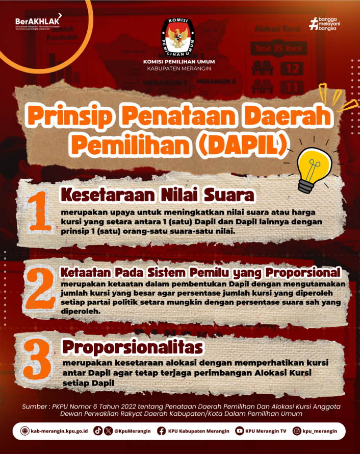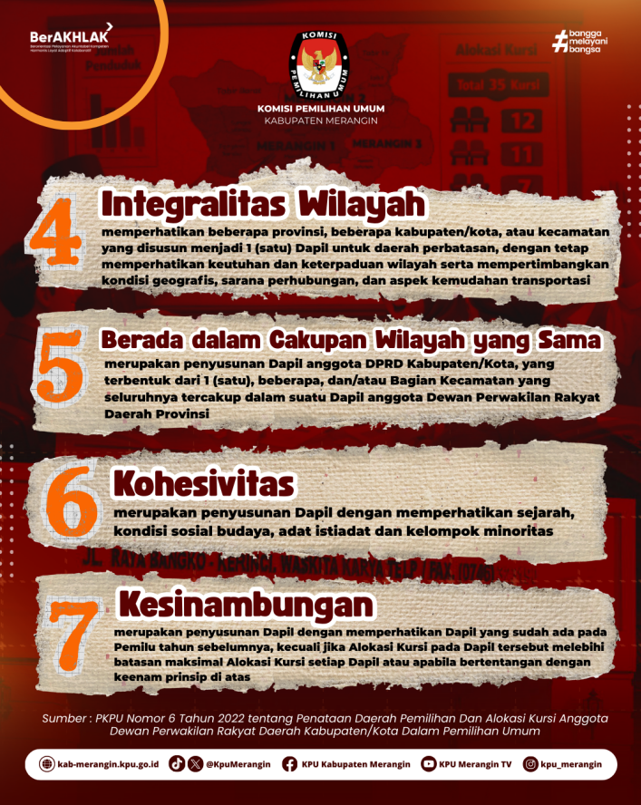 Penataan Dapil bukan cuma soal bagi-bagi wilayah, tapi soal keadilan suara kita! Sesuai PKPU No. 6 Tahun 2022, ada 7 prinsip yang harus dipenuhi—