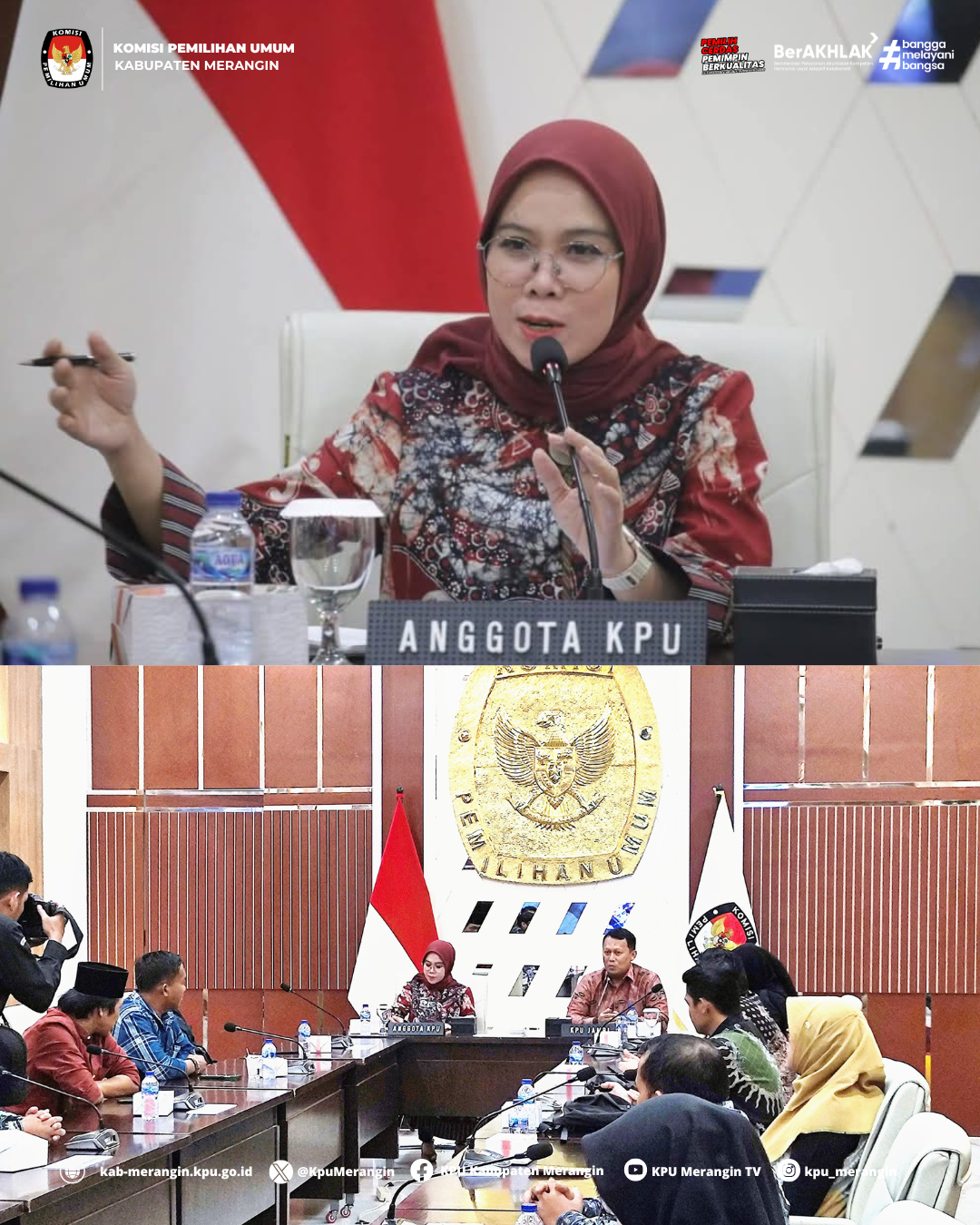Halo #TemanPemilih, Anggota KPU Kabupaten Merangin Hayatul Mughiroh didampingi kasubbag Teknis Penyelenggaraan dan Hukum Inayati ber Audiensi bersama Anggota Divisi Hukum Provinsi dan Kabupaten/Kota se-Provinsi Jambi ke KPU RI disambut oleh Anggota Iffa Rosita, bertempat di Ruang Rapat Lantai 1 Gedung KPU, Rabu (26/2/2025).