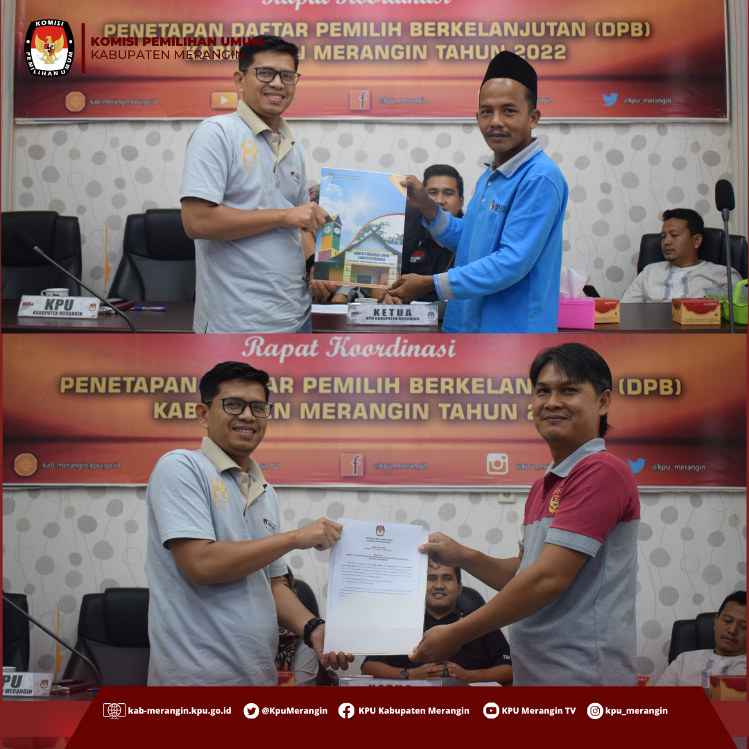 Rapat pleno yang dipimpin oleh Hayatul Mughiroh (anggota KPU Kabupaten Merangin) menetapkan DPB Kabupaten Merangin periode September 2022 berjumlah 257.591 pemilih. Jumlah tersebut bertambah dari DPB periode Agustus 2022 yang berjumlah 244.282 pemilih. Penambahan jumlah pemilih ini merupakan hasil tindak lanjut pemadanan data pemilih berkelanjutan semester II tahun 2021 KPU RI dengan Data Kependudukan Kementerian Dalam Negeri Republik Indonesia. Rakor penetapan DPB ini menjadi rakor terakhir yang selanjutnya akan dilaksanakan pemutakhiran data pemilih dan penyusunan daftar pemilih sebagao rangkaian pelaksanaan tahapan Pemilu tahun 2024.