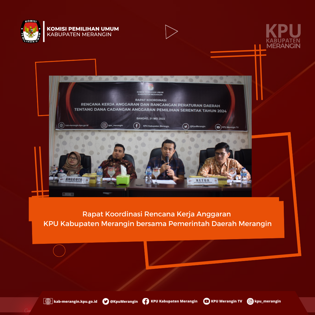 Dipimpin langsung oleh Ketua KPU Kabupaten Merangin Iron Sahroni, rakor ini menjadi kesempatan KPU Kabupaten Merangin menyampaikan kebutuhan anggaran dalam Pemilihan Bupati dan Wakil Bupati Merangin 2024 serta peraturan perundang-undangan yang menjadi dasar penyusunan anggaran kepada seluruh peserta rakor. Dalam kesempatan tersebut, peserta rakor menyampaikan kesiapannya dalam mendukung Tahapan Pemilihan Serentak 2024 di Kabupaten Merangin. Secara khusus, Kepala Bagian Pemerintahan Sekretariat Daerah Kabupaten Merangin, Mulyono menyampaikan rencana anggaran yang diajukan KPU akan ditindaklanjuti melalui pembahasan dengan Tim Anggaran Pemerintah Daerah (TAPD).