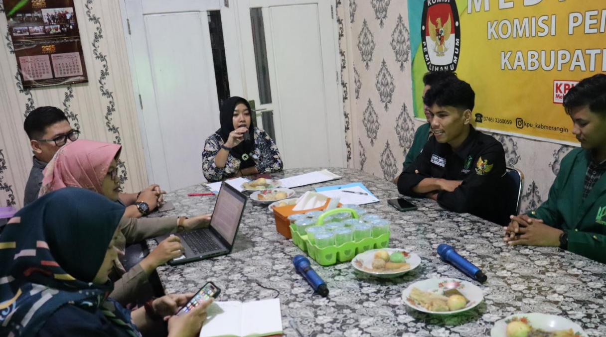 Bangko, Selasa (22/7), KPU Kabupaten Merangin menerima kunjungan Audiensi dari BEM IAI Syekh Maulana Qori Bangko.