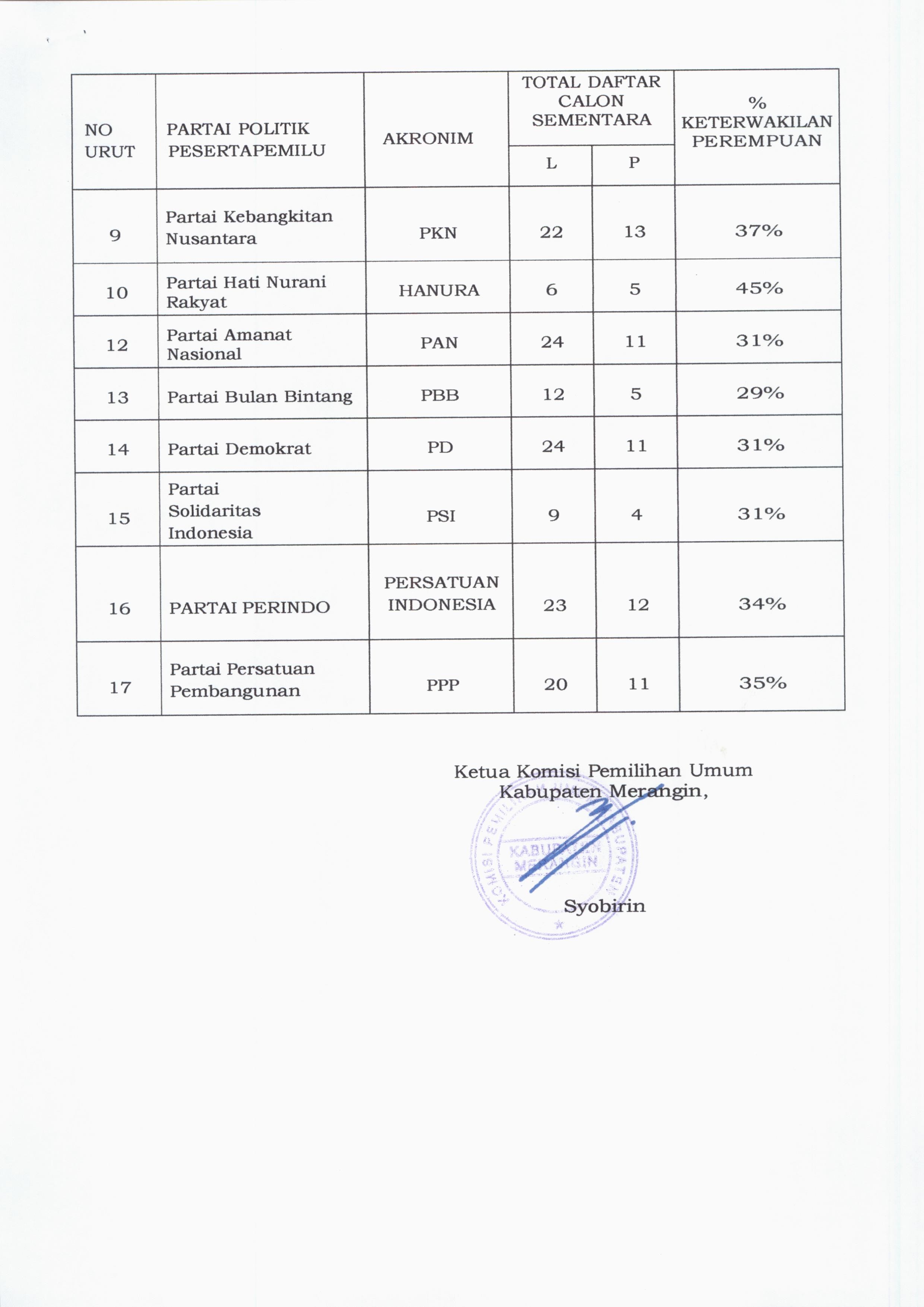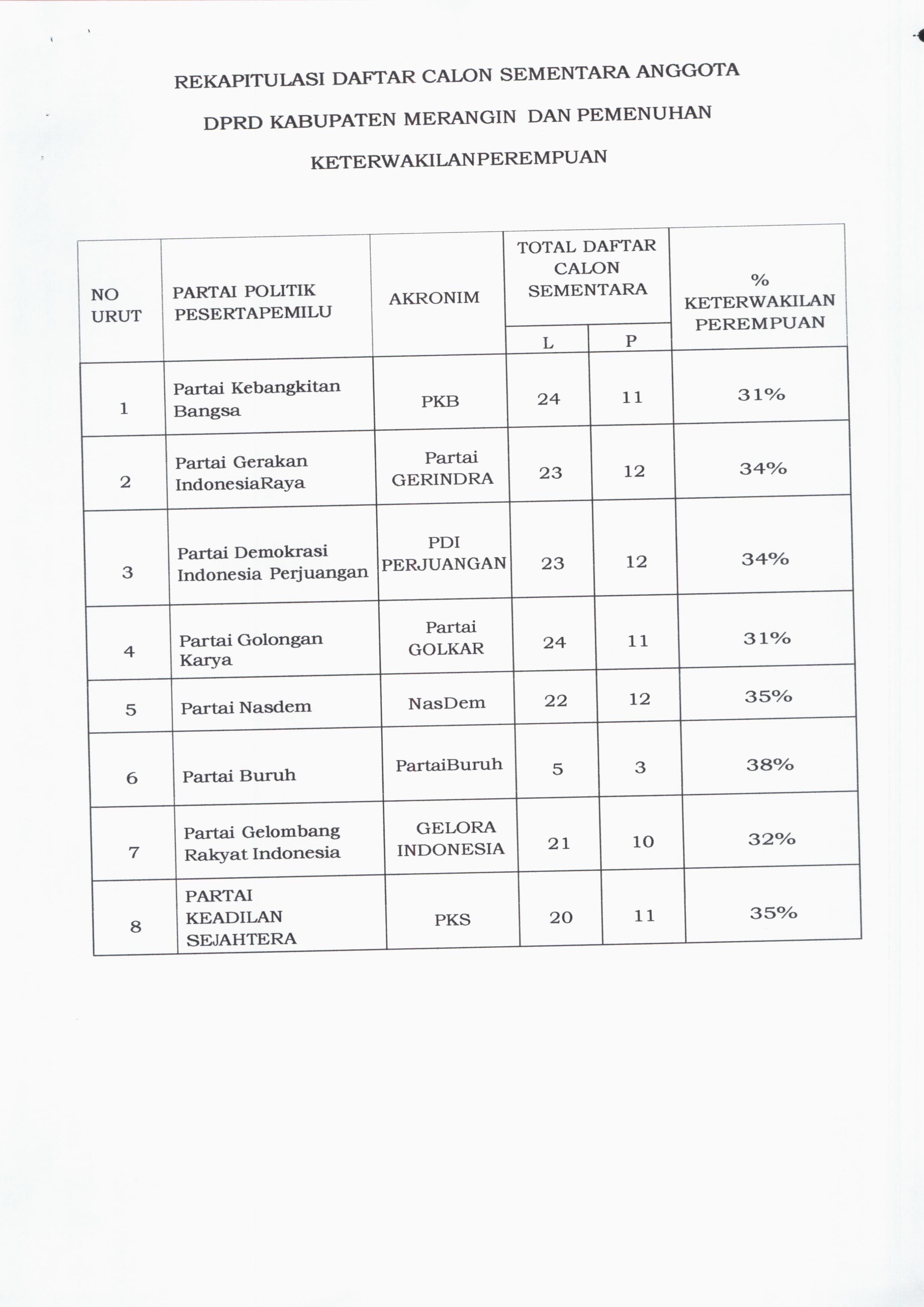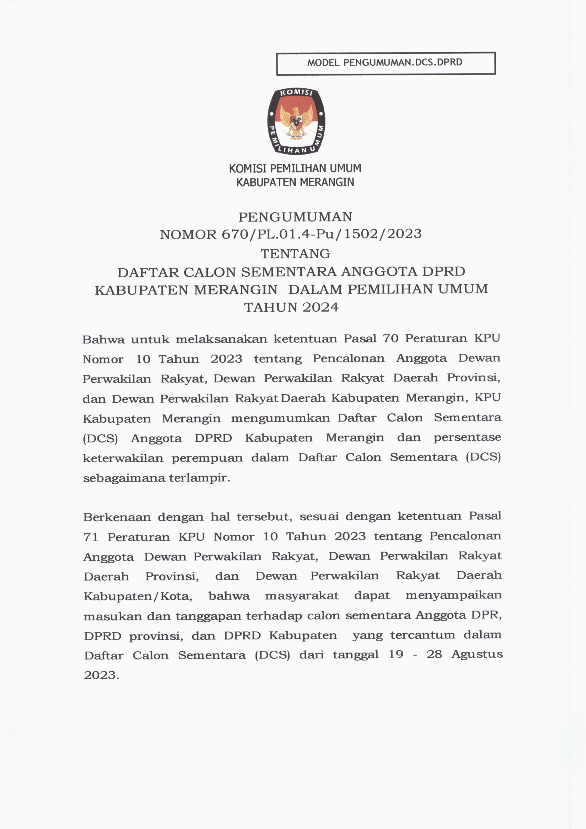 Pengumuman Daftar Calon Sementara (DCS) Bakal Calon Anggota DPRD Kabupaten Merangin Pemilu 2024