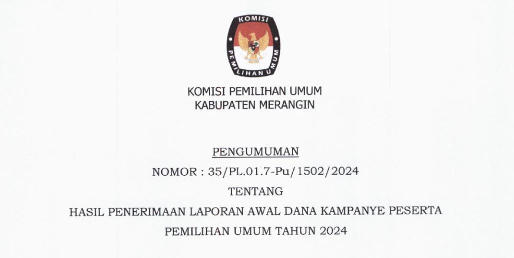 KPU Kabupaten Merangin telah melakukan rekapitulasi Laporan Awal Dana Kampanye (LADK) yang disampaikan Partai Politik Peserta Pemilu 2024 secara daring melalui SIKADEKA. Berdasarkan penyampaian yang telah dilaksanakan pada tanggal 7 Januari 2024, terdapat 7 (tujuh) parpol yang diterima LADK nya, dan 10 (sepuluh) parpol yang akan menyelesaikan LADK Perbaikan dari tanggal 8 sampai dengan 12 Januari 2024. Pengumuman LADK pada 7 (tujuh) parpol tersebut dapat dilihat disini.