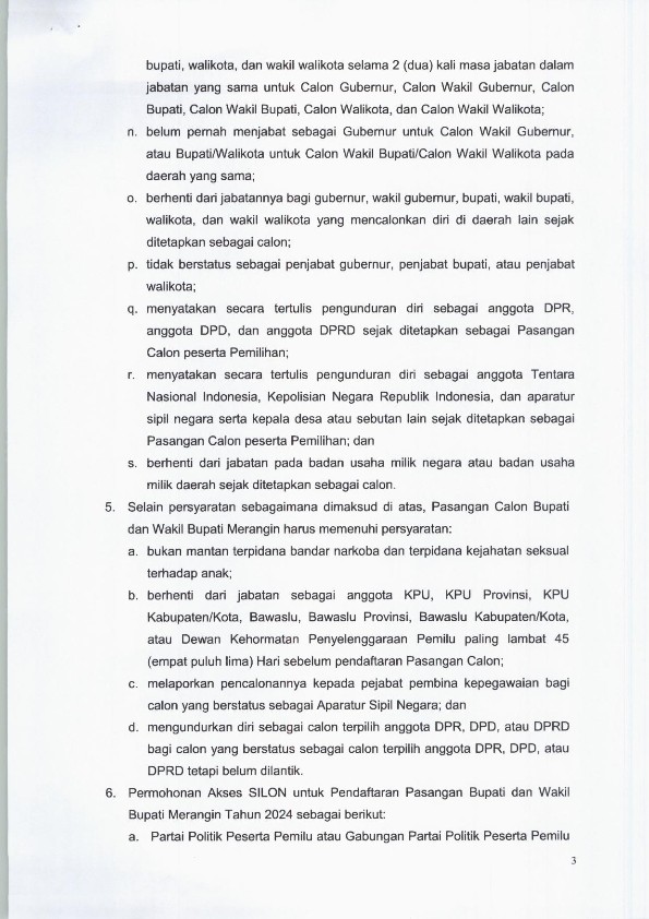 TemanPemilih juga dapat klik link berikut untuk mengunduh SK Syarat Minimal Perolehan Suara Sah untuk Pencalonan Bupati dan Wakil Bupati Merangin:
