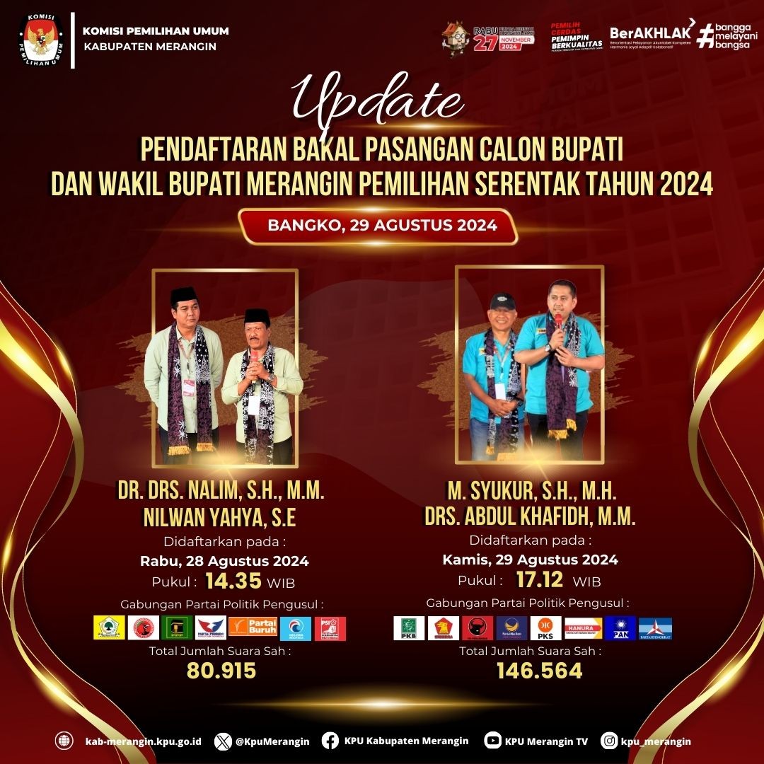 Berikut informasi 2 (dua) Bakal Pasangan Calon Bupati dan Wakil Bupati Merangin pada Pemilihan Serentak Tahun 2024.