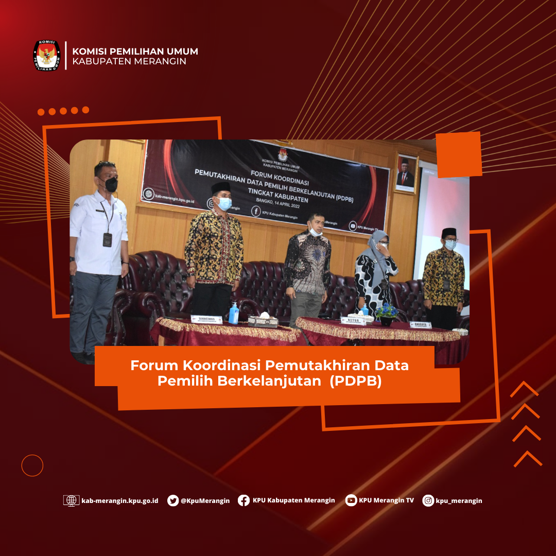 Pada Kamis (14/04) KPU Kabupaten Merangin menyelenggarakan Forum Koordinasi Pemutakhiran Data Pemilih Berkelanjutan (PPDB) Tingkat Kabupaten bertempat di Aula Kantor Bappeda Kabupaten Merangin