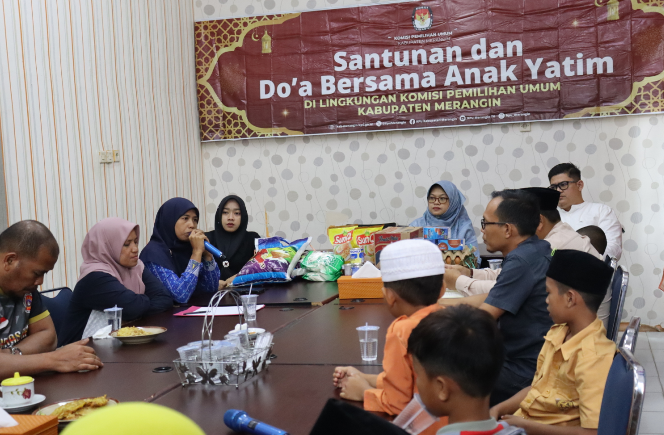 Kegiatan dilaksanakan dalam rangka mempererat tali silaturahmi sekaligus meningkatkan solidaritas antar sesama. Secara simbolis Ketua KPU Kabupaten Merangin Alber Trisman beserta Anggota Hayatul Mughiroh, Hengi, Kenny Ave Sayuti dan Nurfathu Qorida serta seluruh Staf Sekretariat KPU Kabupaten Merangin menyerahkan santunan kepada anak-anak dari Panti Asuhan 'Aisyiyah Muhammadiyyah.