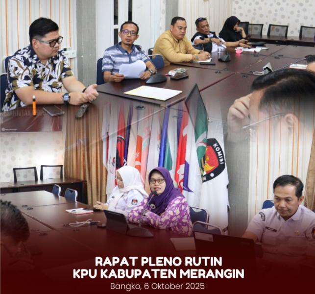 Bangko, KPU Kabupaten Merangin melaksanakan Rapat Pleno Terbuka Rekapitulasi Pemutakhiran Data Pemilih Berkelanjutan Triwulan III tingkaat Kabupaten Merangin Tahun 2025, dilaksanakan di Aula kantor KPU Kabuapten Merangin. Kamis, (2 Oktober 2025).