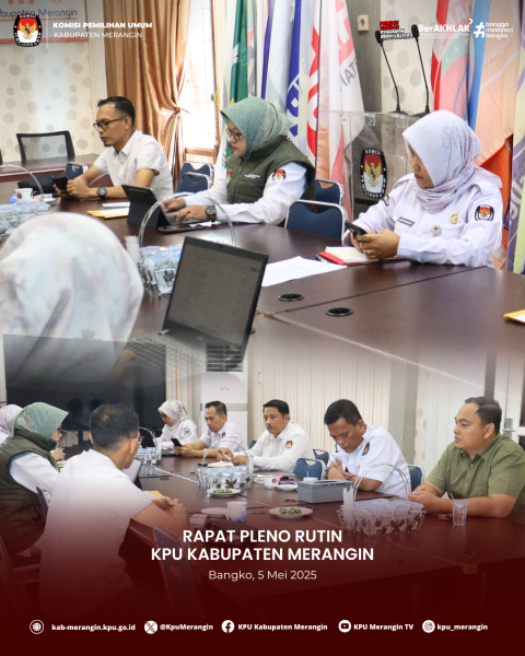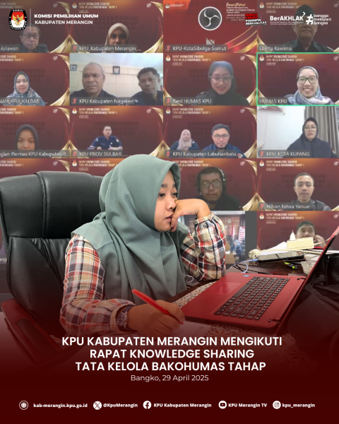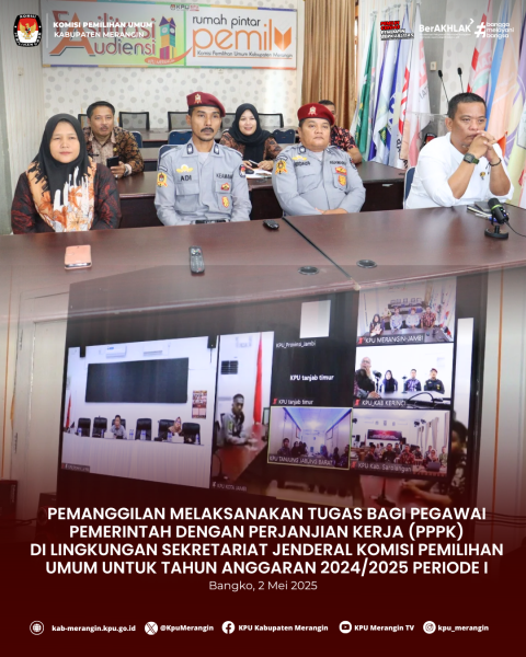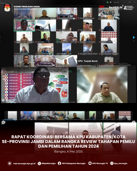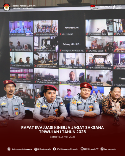 Halo #TemanPemilih, KPU Kabupaten Merangin mengikuti Rapat Evaluasi Kinerja Jagat Saksana Triwulan I Tahun 2025 yang diselenggarakan secara daring oleh KPU RI, pada Jum'at (02 Mei 2025).