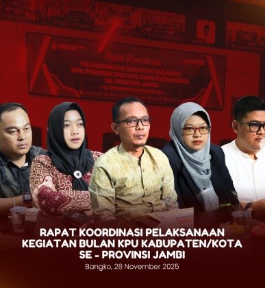 Bangko, KPU Kabupaten Merangin mengikuti Rapat Koordinasi terkait Langkah-Langkah Akhir Tahun (LLAT) yang diselenggarakan oleh KPU Provinsi Jambi secara daring, (Senin, 1/12/2025).