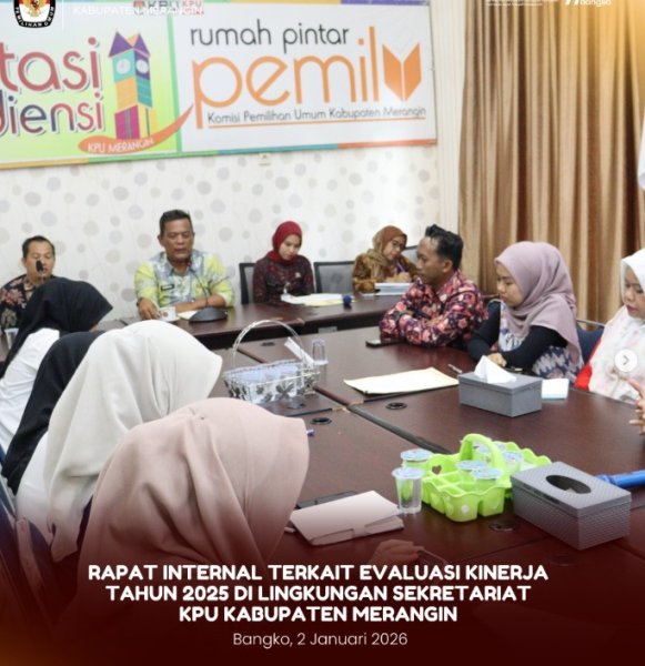 Bangko, KPU Kabupaten Merangin mengikuti Kegiatan Rapat Evaluasi Kinerja Penganggaran dan Kualitas Pelaksanaan Anggaran Tahun Anggaran 2025 secara daring yang diselenggarakan oleh KPU Republik Indonesia, pada Selasa (30/12/2025).