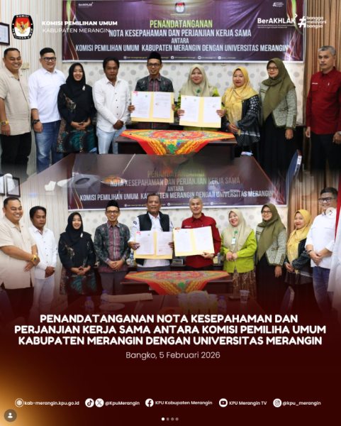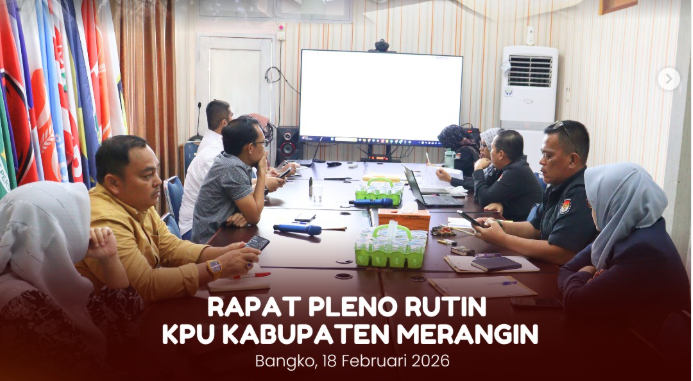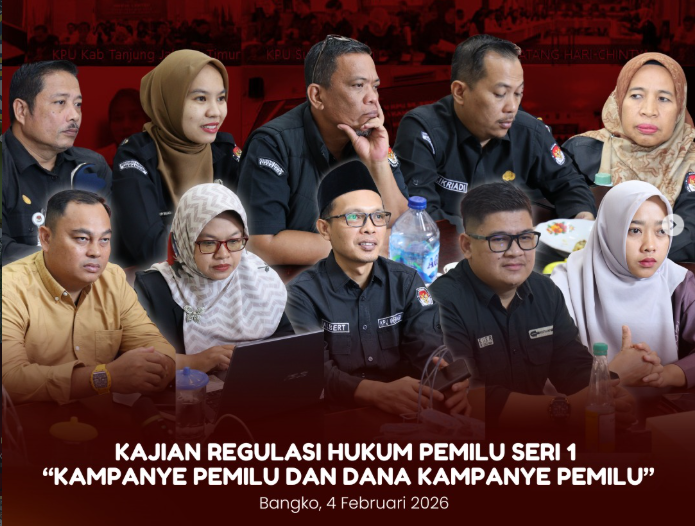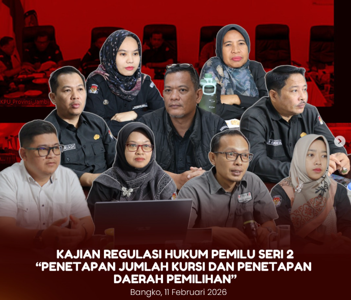 Bangko, KPU Kabupaten Merangin mengikuti kegiatan Kajian Regulasi Hukum Pemilu Seri 2 "Penetapan Jumlah Kursi dan Penetapan Daerah Pemilihan" yang diselenggarakan secara daring oleh KPU Provinsi Jambi diikuti oleh KPU Kabupaten/Kota se-Provinsi Jambi pada Rabu, 11 Februari 2026. Kegiatan dibuka oleh Ketua Divisi Hukum dan Pengawasan KPU Provinsi Jambi, Bapak Suparmin. Dilanjutkan dengan pemaparan kajian regulasi oleh KPU Kota Jambi dengan judul "Penetapan Jumlah Kursi dan Penetapan Daerah Pemilihan". Kegiatan ini memastikan penerapan prinsip penyusunan dapil sesuai dengan PKPU yang mengatur tentang Penataan Daerah Pemilihan dengan memperhatikan prinsip kesetaraan nilai suara, ketaatan pada sistem pemilu yang proporsional, proporsionalitas, integralitas wilayah, berada dalam cakupan wilayah yang sama, kohesivitas dan kesinambungan. Dalam sesi diskusi, KPU Kabupaten/Kota se-Provinsi Jambi turut memberikan masukan serta pandangan, yang selanjutnya diharapkan dapat menjadi bahan masukan yang komprehensif dalam penyusunan regulasi kepemiluan. Pada kegiatan ini diikuti oleh Ketua KPU Kabupaten Merangin Alber Trisman, Anggota KPU Kabupaten Merangin, Sekretaris, Kasubbag, Pejabat Fungsional, serta Staf di lingkungan Sekretariat KPU Kabupaten Merangin.