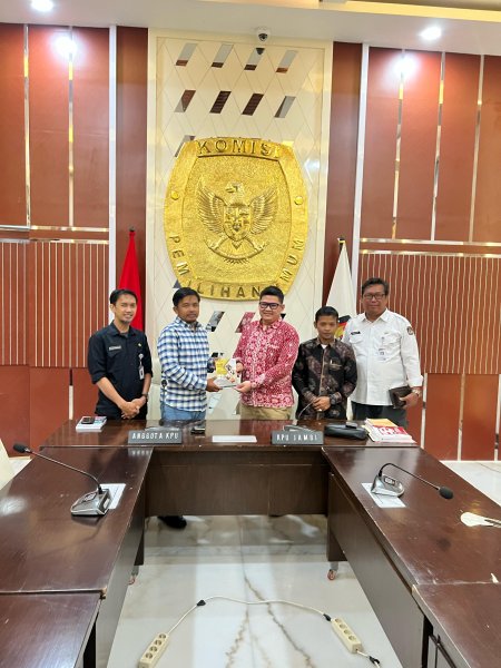 Halo #TemanPemilih, Anggota KPU Kabupaten Merangin Nurfathu Qorida didampingi kasubbag Parmas dan SDM Retno Sari Handayani serta Operator ber Audiensi bersama Anggota Divisi Sosialisasi, Pendidikan Pemilih, Partisipasi Masyarakat dan SDM Provinsi dan Kabupaten/Kota se-Provinsi Jambi serta menyampaikan majalah jurnalistik mengenai perjalanan Tahapan Pilkada 2024 di Kabupaten Merangin ke KPU RI disambut oleh Anggota August Mellaz, bertempat di Ruang Rapat Gedung KPU, Rabu (19/3/2025). Pada pertemuan ini August Mellaz menyampaikan beberapa hal, salah satunya penyusunan indeks partisipasi pemilu yang dilanjutkan untuk pilkada ini bertujuan untuk melihat sisi partisipasi selain hari H pemungutan suara dengan segala situasinya. Indeks partisipasi akan berguna bagi potret penyelenggaraan pemilu dan pilkada selanjutnya. Serta Mellaz juga meminta jajaran melakukan kreativitas dalam pelaksanaan sosialisasi dan pendidikan pemilih ditengah efisiensi anggaran, dengan bekerja sama pemerintah daerah setempat. Selain itu Kabag Parmas Reni Renjani menyampaikan evaluasi atas pengelolaan media sosial oleh masing-masing KPU Kabupaten/Kota. Reni mendorong seluruh pengelola media sosial untuk menjaga dan mengembangkan engagement dengan publik dengan informasi kepemiluan dan kegiatan unit kerja melalui media sosial yang dimiliki. Turut hadir, Kepala Biro Partisipasi dan Hubungan Masyarakat Cahyo Ariawan, jajaran Setjen KPU, serta KPU Provinsi dan KPU Kab/Kota se-Jambi.