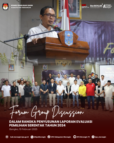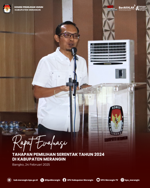 Halo #TemanPemilih, bertempat di Aula Ruang Pola I, KPU Kabupaten Merangin menyelenggarakan kegiatan Rapat Evaluasi Tahapan Pemilihan Serentak Tahun 2024. Senin, 24 Februari 2025.