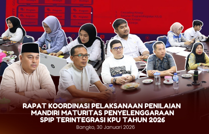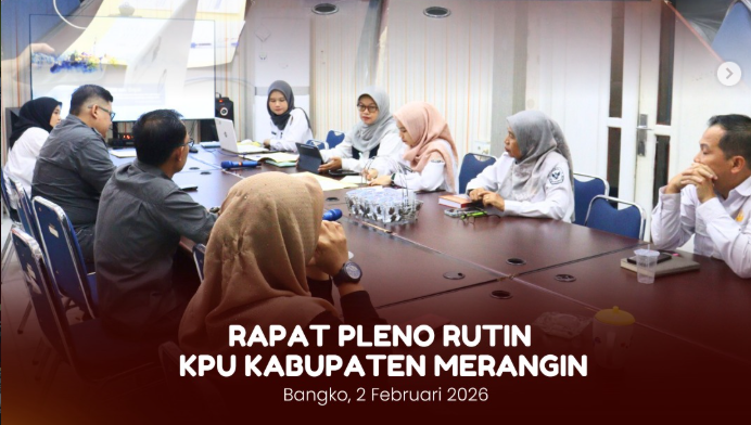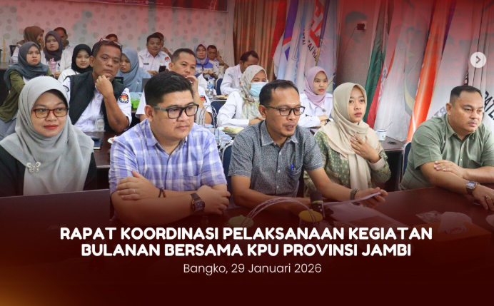 Bangko, KPU Kabupaten Merangin menghadiri Rapat Koordinasi (Rakor) Internal Partisipasi Hubungan Masyarakat dan Sumber Daya Manusia bersama KPU Kabupaten/Kota se-Provinsi Jambi yang diselenggarakan secara daring oleh KPU Provinsi Jambi, Selasa, 3 Februari 2026.