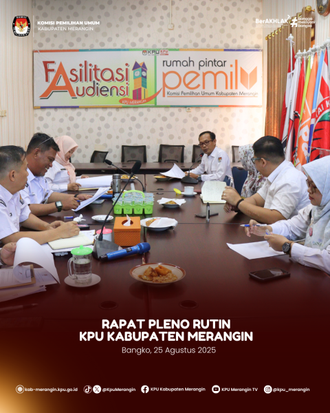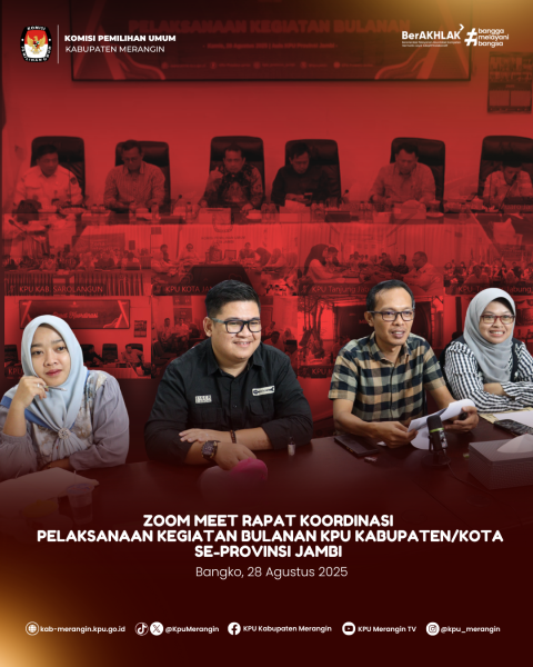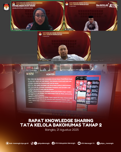 Halo #TemanPemilih, KPU Kabupaten Merangin mengikuti kegiatan Rapat Knowledge Sharing Tata Kelola Bakohumas Tahap 2 secara daring, yang dilaksanakan oleh KPU RI, pada Kamis (21/08/2025).